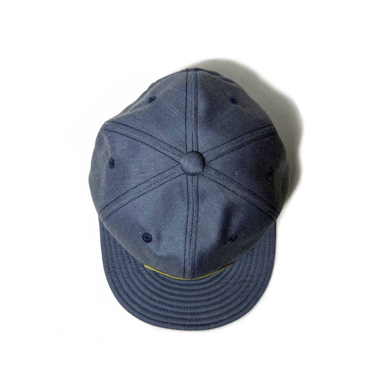 マスタードはツバの裏をグリーンの切り替え仕様に。